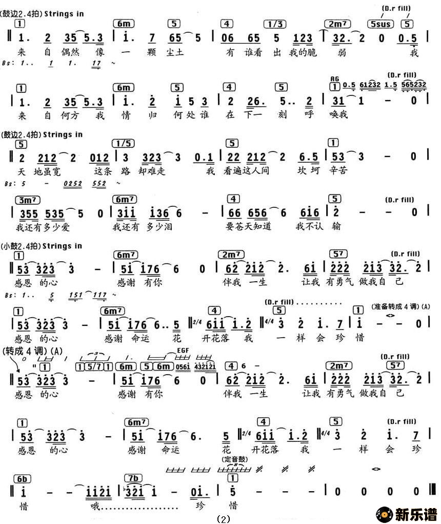 > 感恩的心最新曲谱