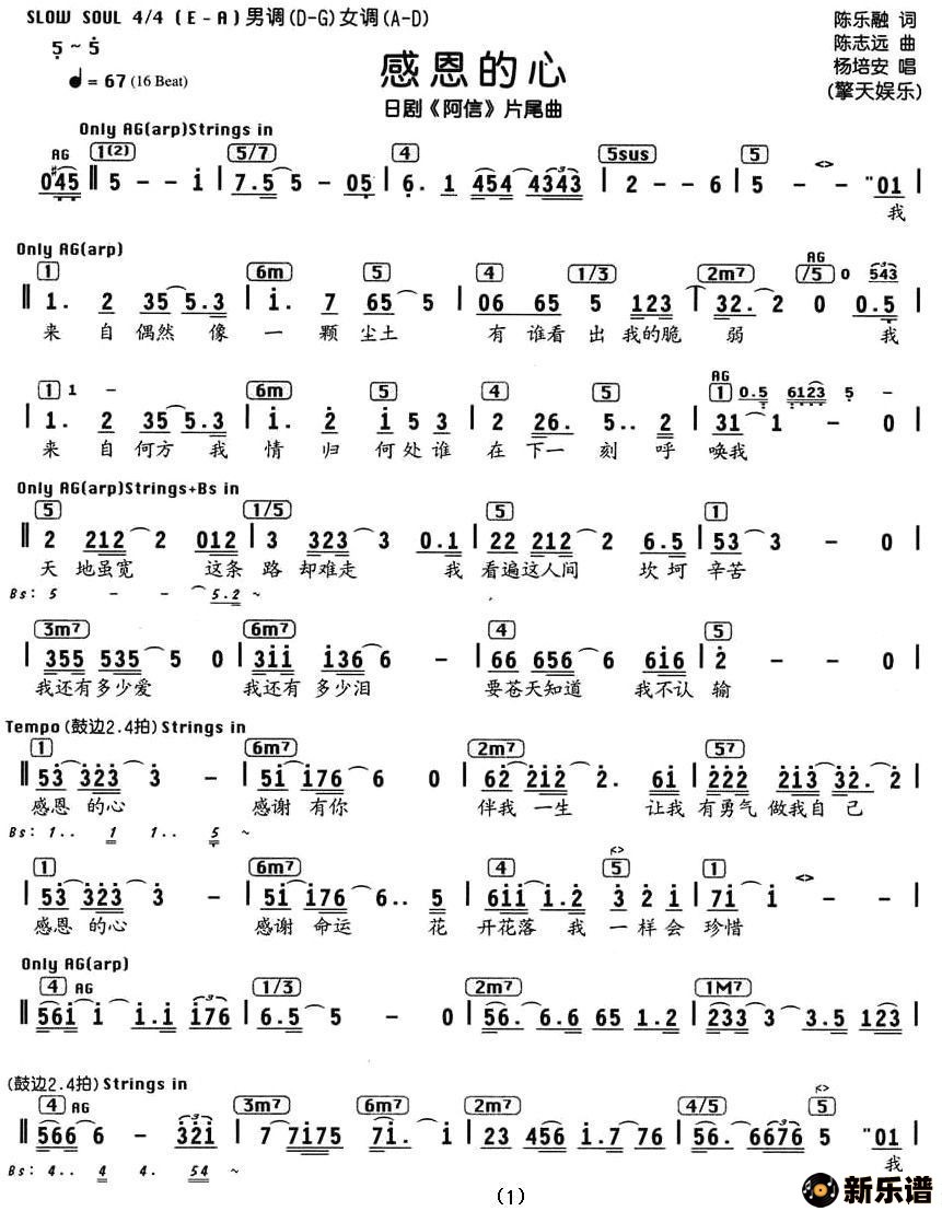 感恩的心最新曲谱