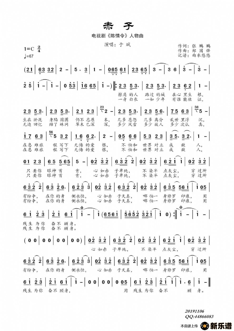 《赤子》最新曲谱 于斌-曲水悠悠制谱