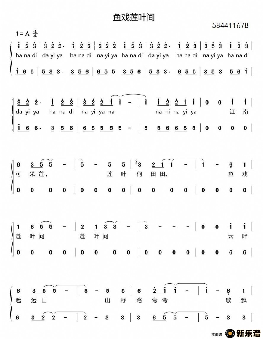 演唱的鱼戏莲叶间二部合唱谱歌词,鱼戏莲叶间二部合唱谱最新曲谱.