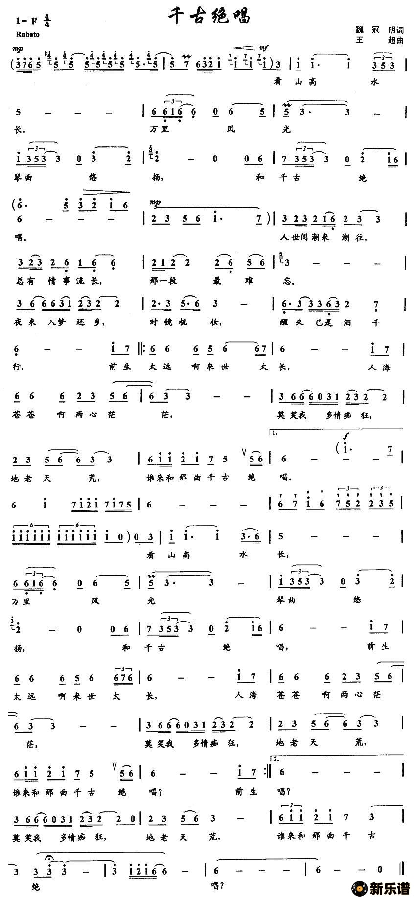 王庆爽演唱的千古绝唱歌词,千古绝唱最新曲谱.