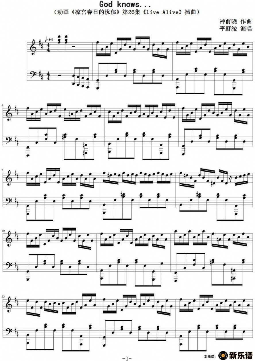god knows...(动画《凉宫春日的忧郁》第26集《live alive》插曲)平野绫 平野绫演唱的god knows...(动画《凉宫春日的忧郁》第26集《live alive》插曲)歌词,god knows...(动画《凉宫春日的忧郁》第26集《live alive》插曲)最新曲谱.