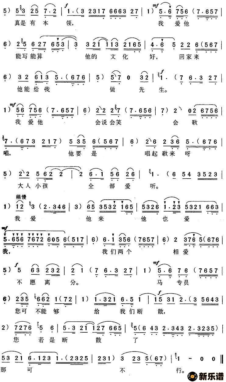 新凤霞演唱的我爱他歌词,我爱他最新曲谱.