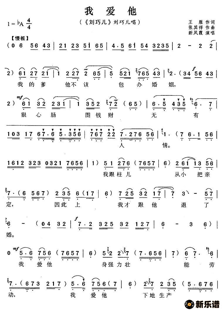 我爱他/新凤霞 刘巧儿 相关曲谱