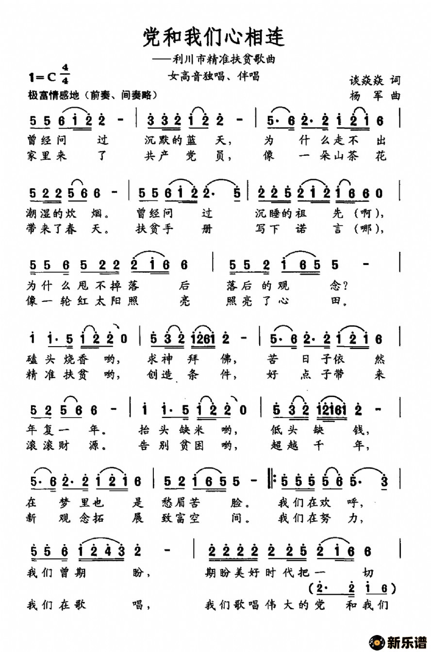 陈春茸演唱的党和我们心相连歌词,党和我们心相连最新曲谱.