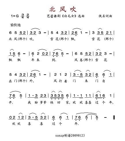 演唱的北风吹歌词,北风吹最新曲谱.