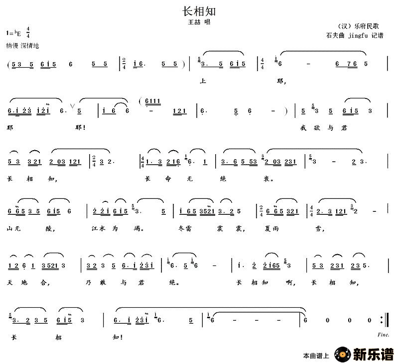 王喆演唱的长相知歌词,长相知最新曲谱.