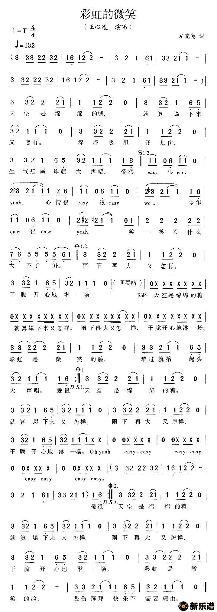 王心凌演唱的彩虹的微笑歌词,彩虹的微笑最新曲谱.