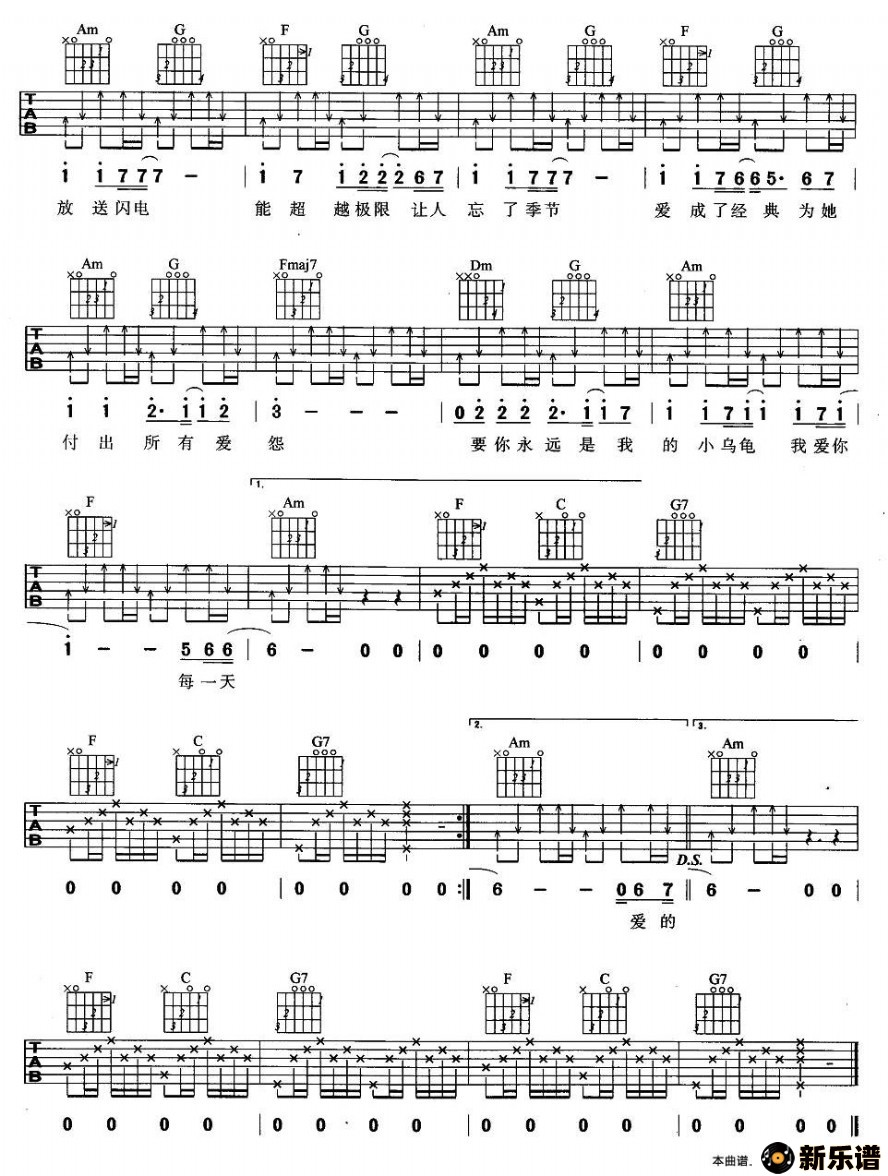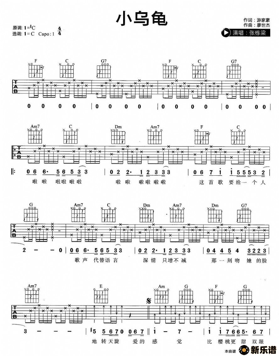 张栋梁演唱的小乌龟歌词,小乌龟最新曲谱.