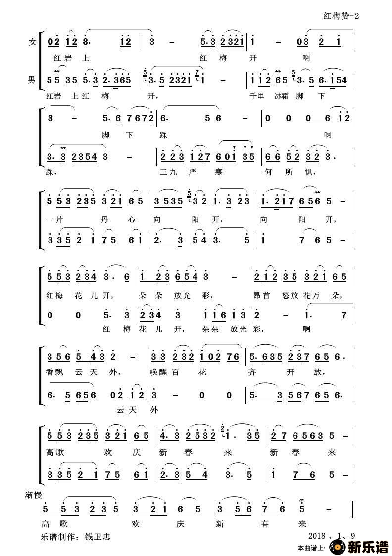 演唱的红梅赞歌词,红梅赞最新曲谱.