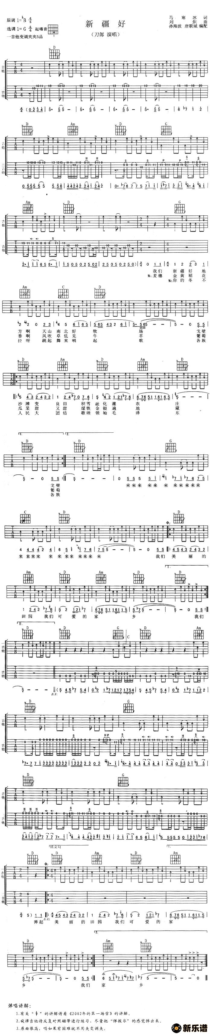 《新疆好》最新曲谱 刀郎