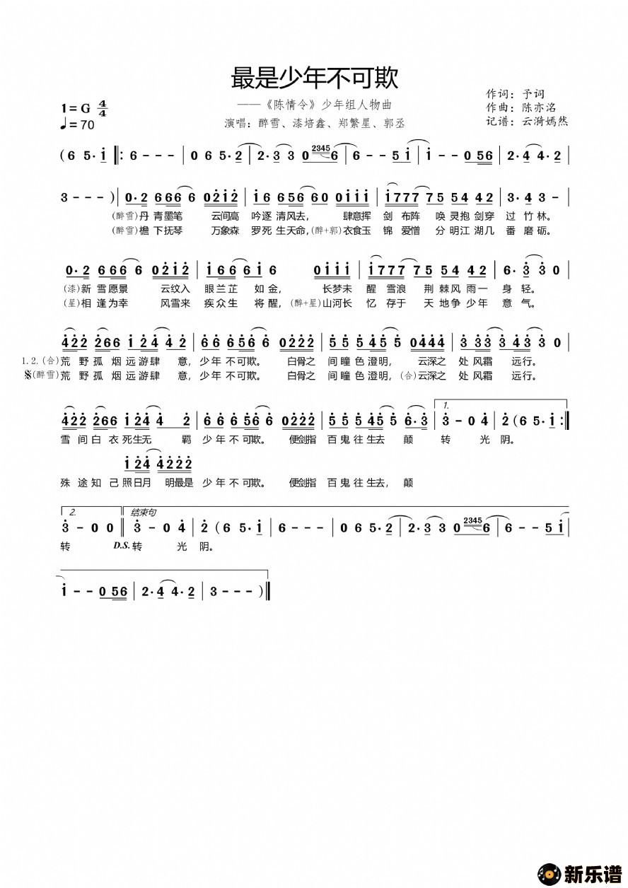 最是少年不可欺(电视剧《陈情令》少年组人物曲)醉雪/郑繁星/郭丞/漆培鑫 醉雪/郑繁星/郭丞/漆培鑫演唱的最是少年不可欺(电视剧《陈情令》少年组人物曲)歌词,最是少年不可欺(电视剧《陈情令》少年组人物曲)最新曲谱.