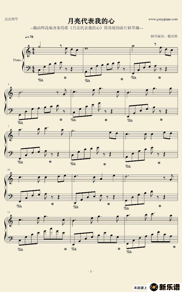 演唱的月亮代表我的心歌词,月亮代表我的心最新曲谱.