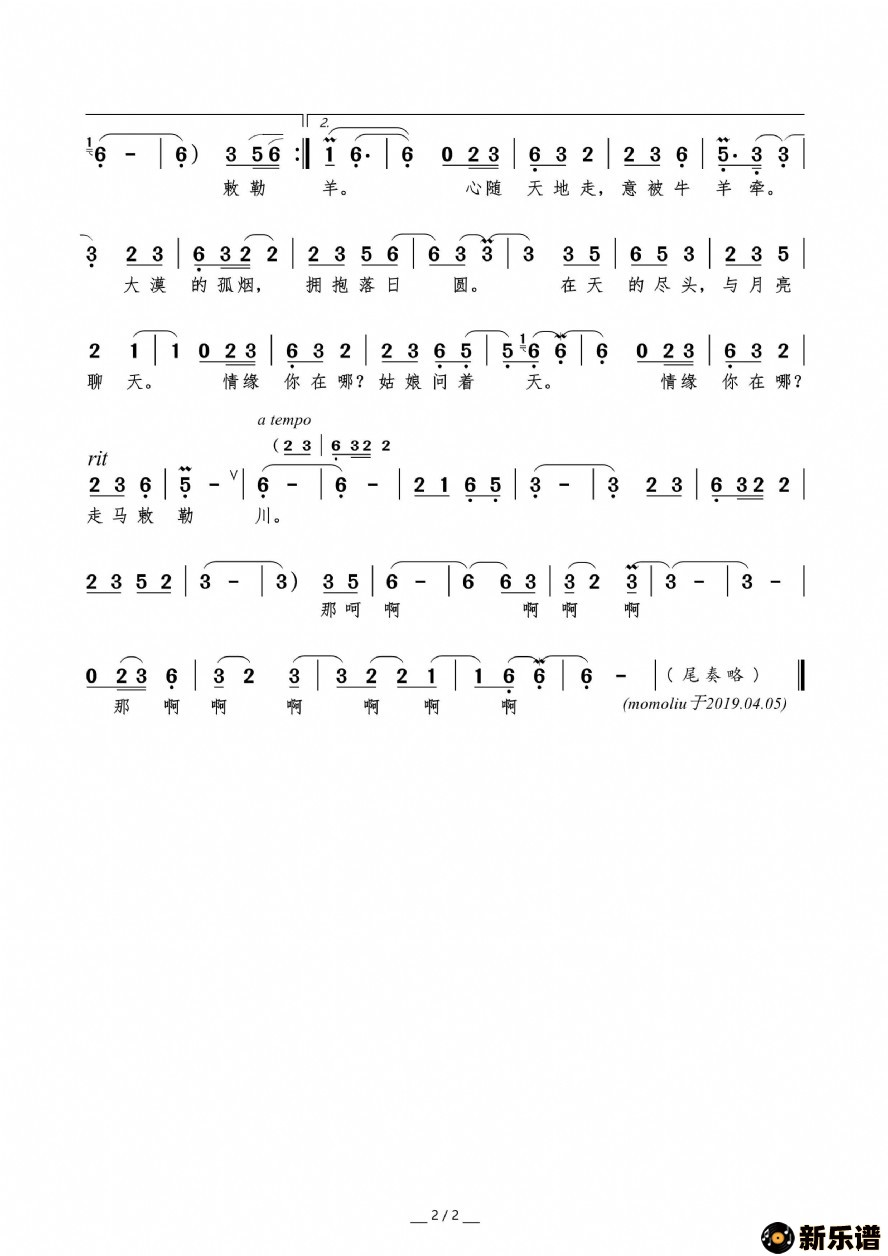 《敕勒歌》最新曲谱 谭维维-momoliu制谱