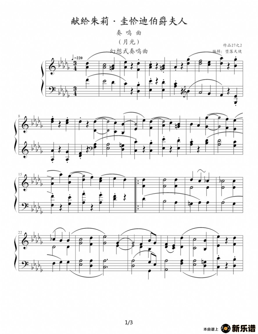 演唱的月光奏鸣曲歌词,月光奏鸣曲最新曲谱.