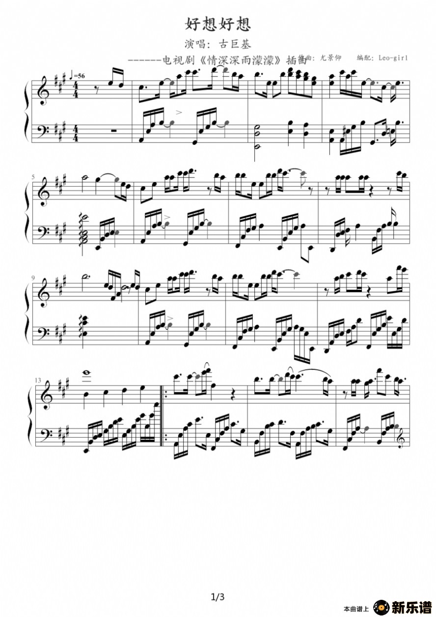 好想好想(电视剧《情深深雨濛濛》主题歌)最新曲谱