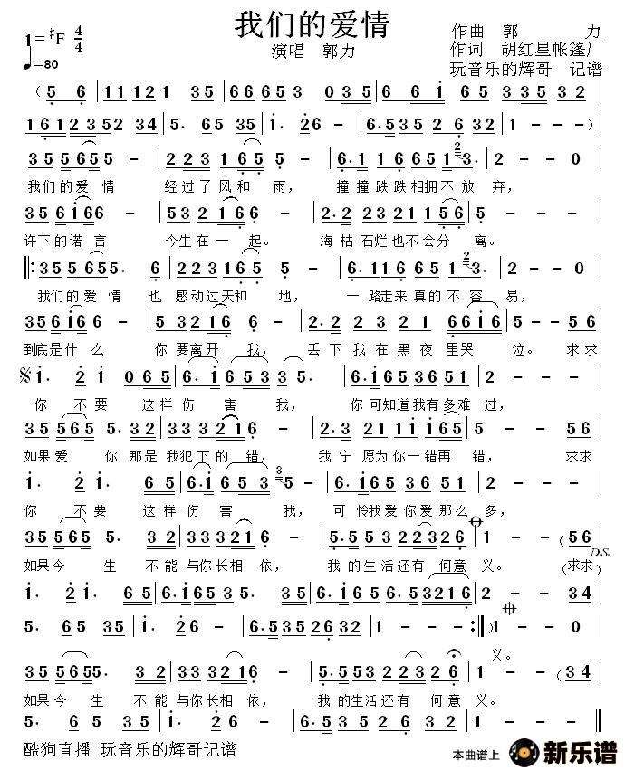 郭力演唱的我们的爱情歌词,我们的爱情最新曲谱.