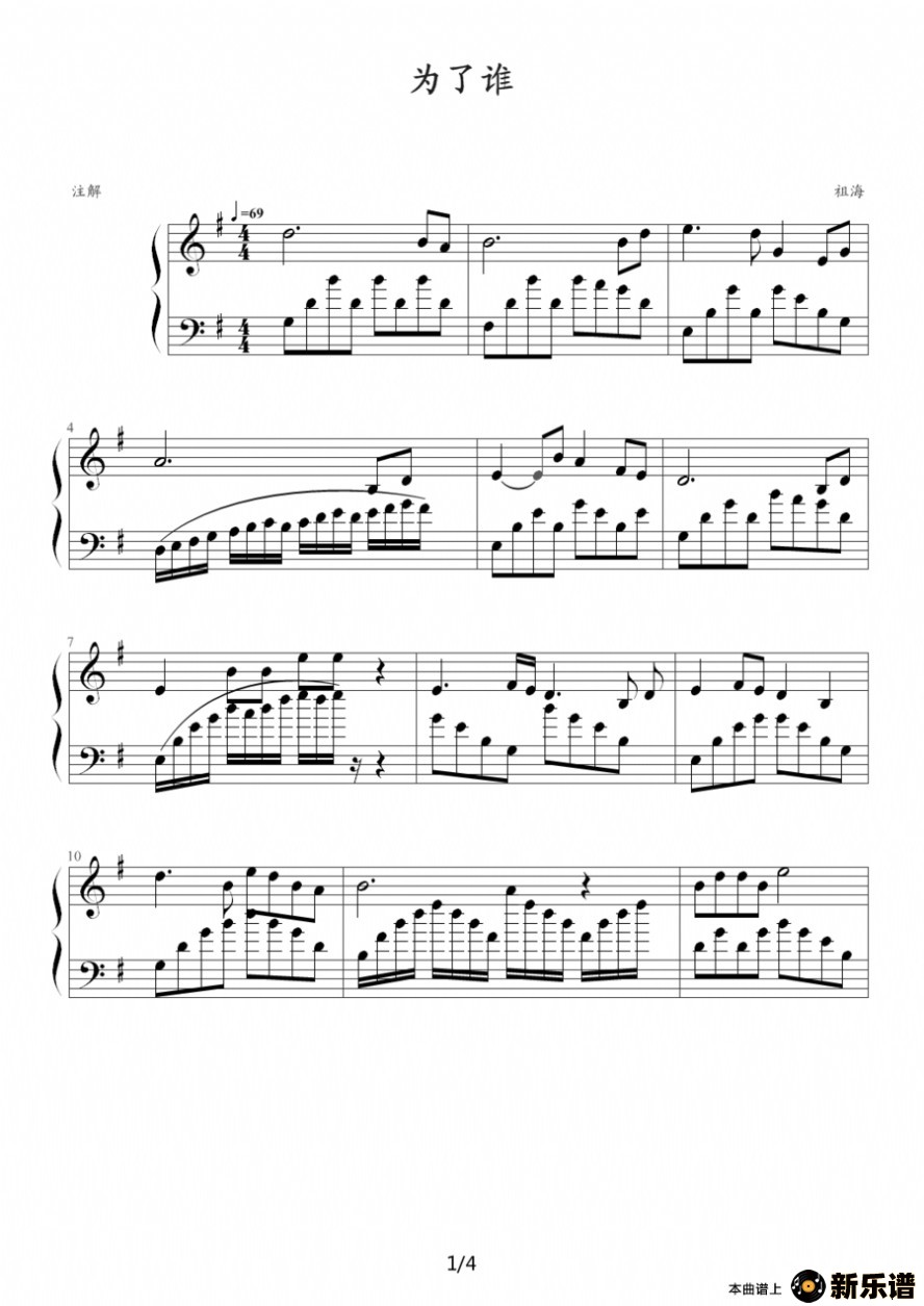 祖海演唱演唱的为了谁歌词,为了谁最新曲谱.