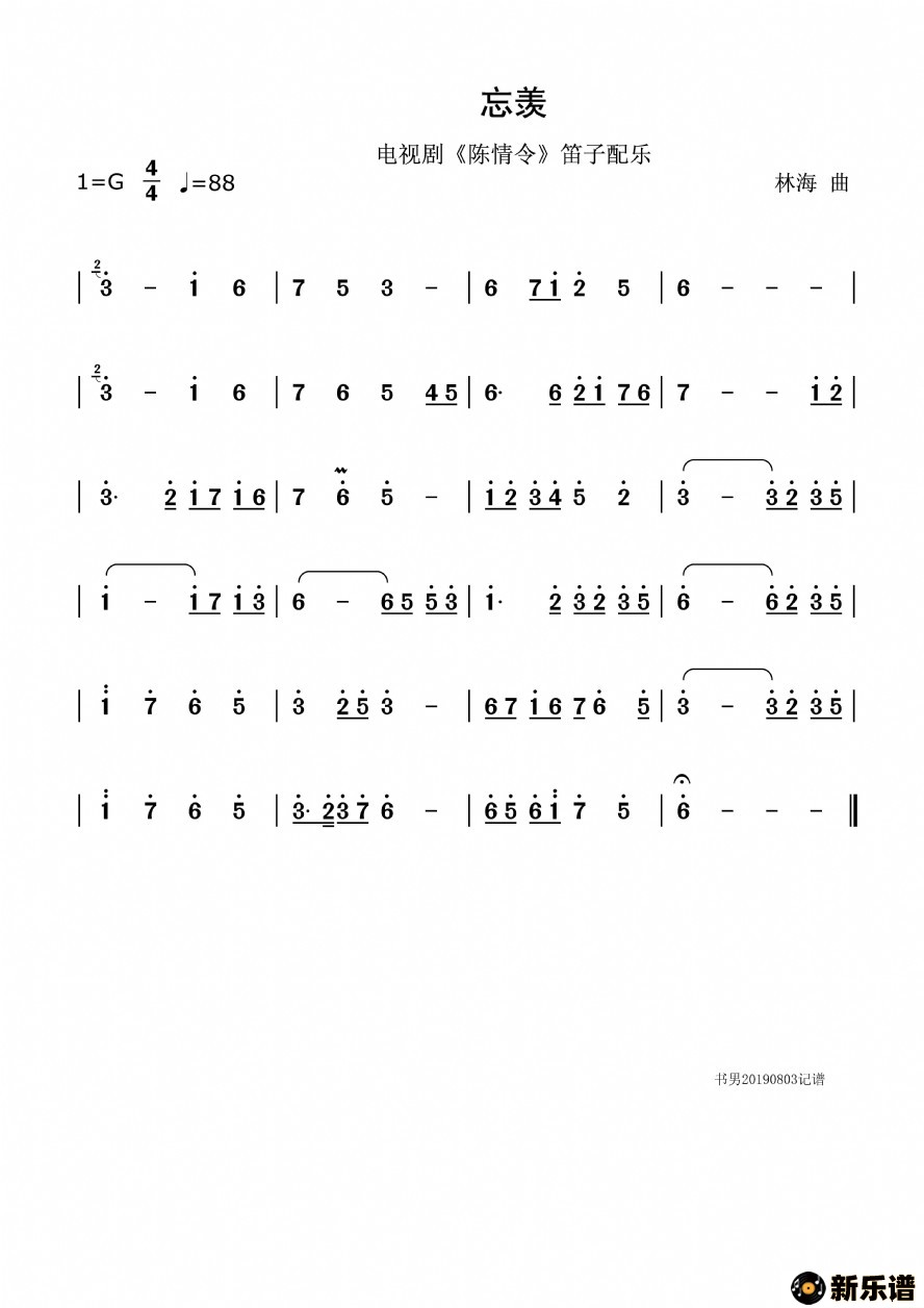 《忘羡(电视剧《陈情令》笛子配乐谱)》最新曲谱 陈悦