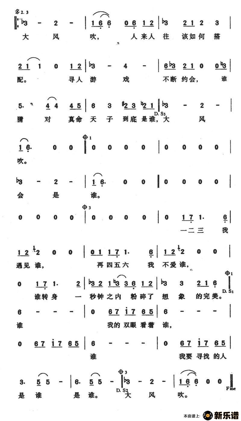 许慧欣演唱的大风吹歌词,大风吹最新曲谱.