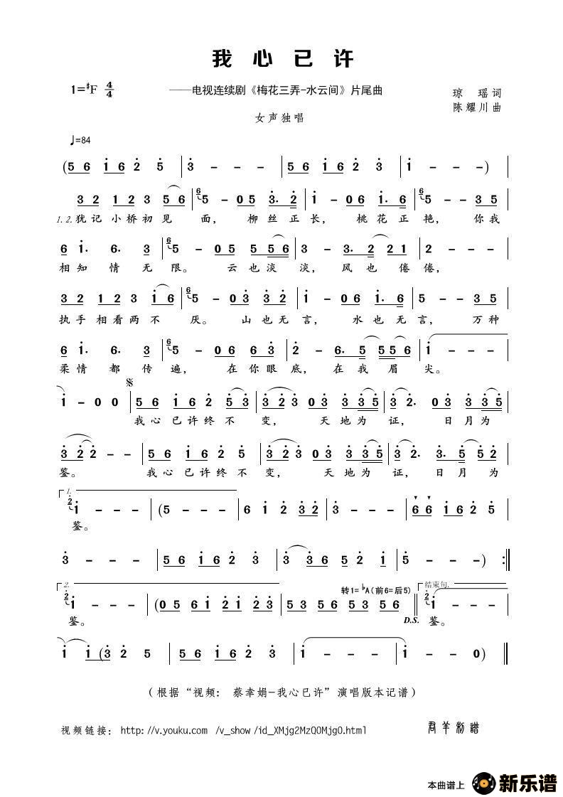 《我心已许》最新曲谱 蔡幸娟-君羊制谱