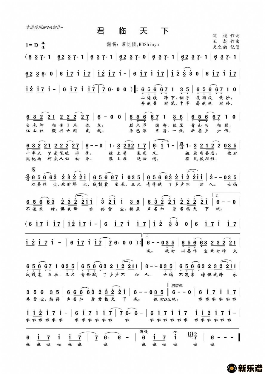 萧忆情KBShinya演唱的君临天下歌词,君临天下最新曲谱.