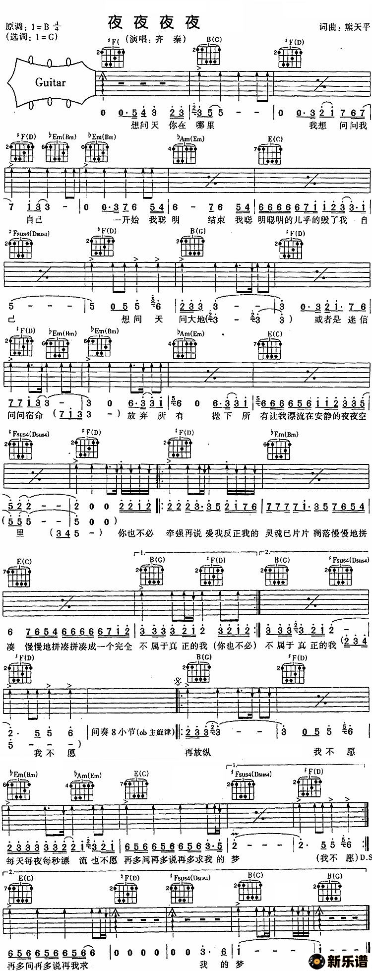 齐秦演唱的夜夜夜夜歌词,夜夜夜夜最新曲谱.