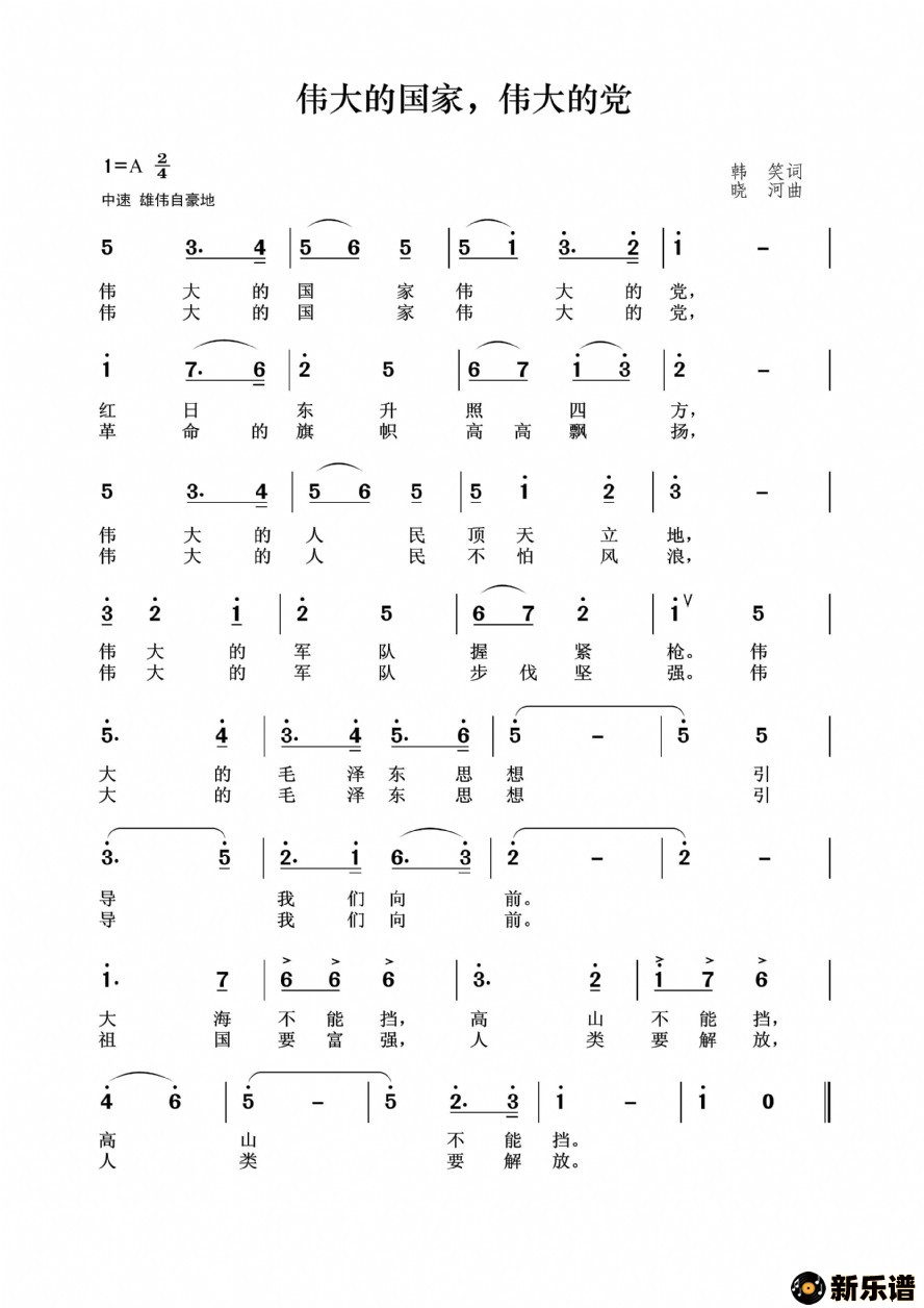 > 伟大的国家,伟大的党最新曲谱