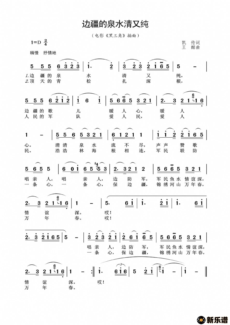 演唱的边疆的泉水清又纯歌词,边疆的泉水清又纯最新曲谱.