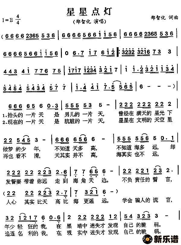 郑智化演唱的星星点灯歌词,星星点灯最新曲谱.