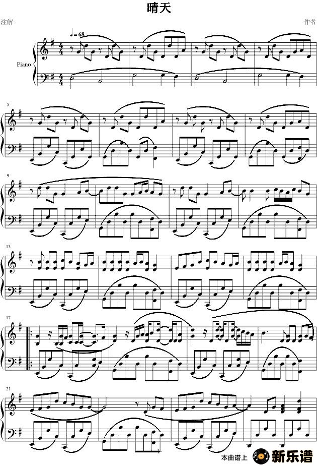 周杰伦演唱的晴天 歌词,晴天 最新曲谱.