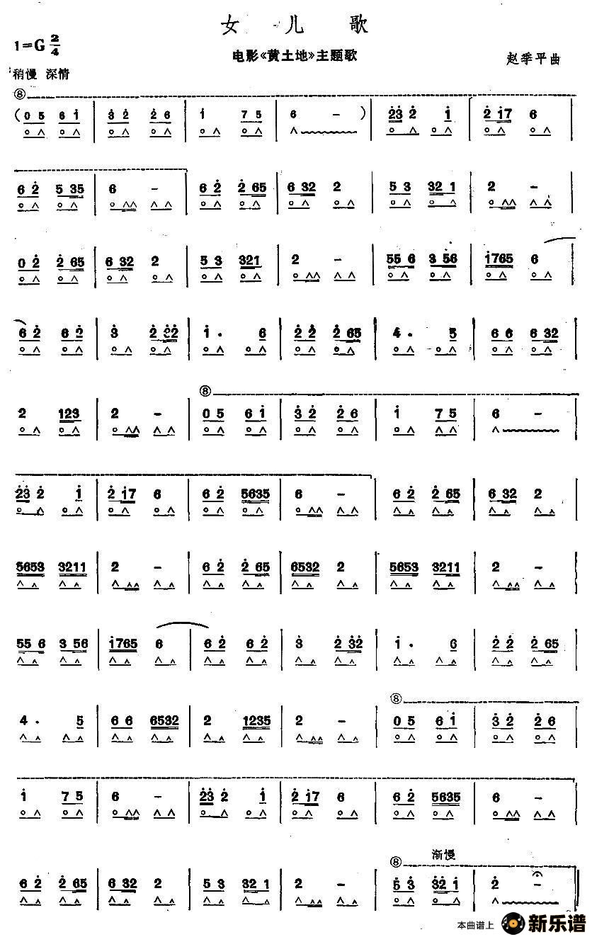 > 女儿歌(电影《黄土地》主题歌)最新曲谱