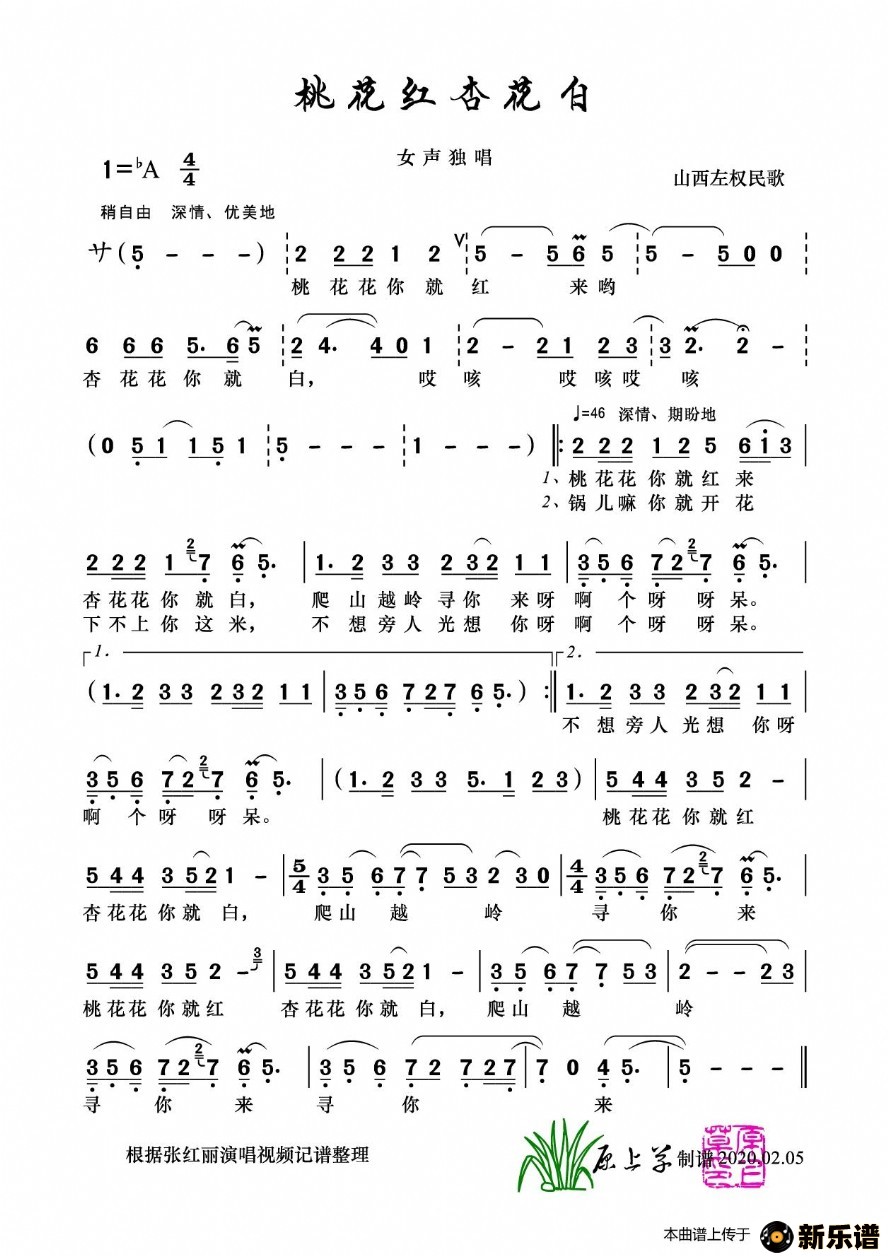 张红丽演唱的桃花红杏花白歌词,桃花红杏花白最新曲谱.
