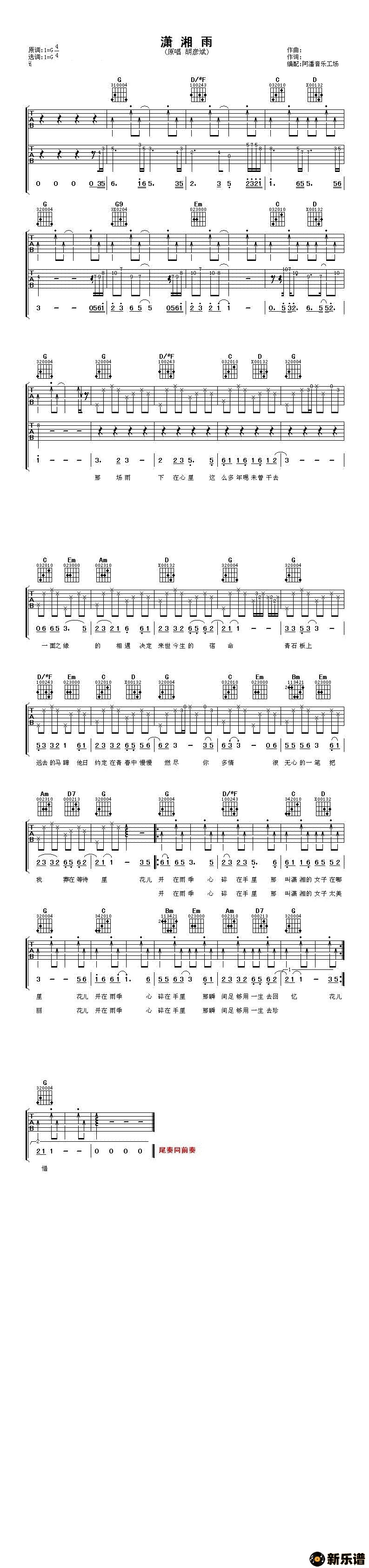 胡彦斌演唱的潇湘雨歌词,潇湘雨最新曲谱.