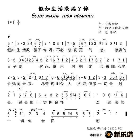 演唱的假如生活欺骗了你歌词,假如生活欺骗了你最新曲谱.
