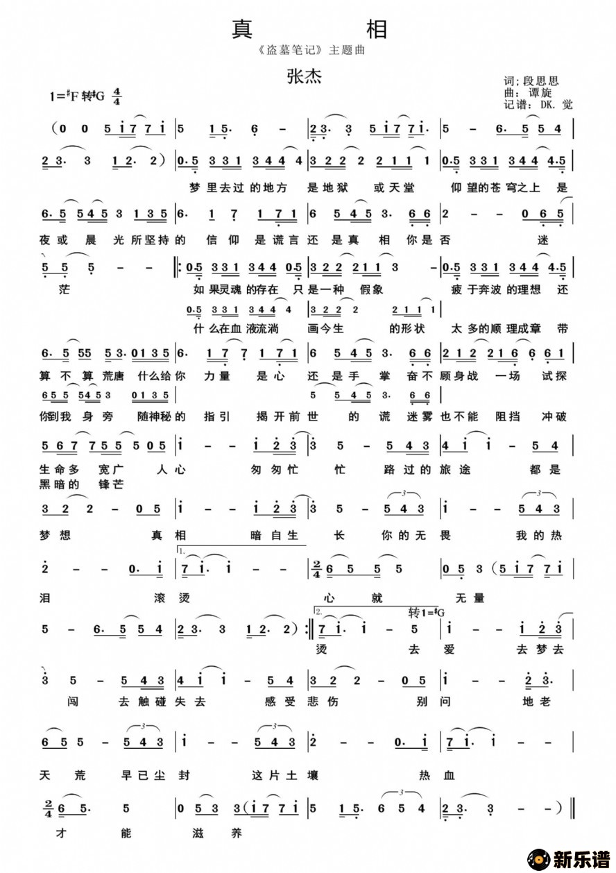 《真相(《盗墓笔记》主题曲)》最新曲谱 张杰