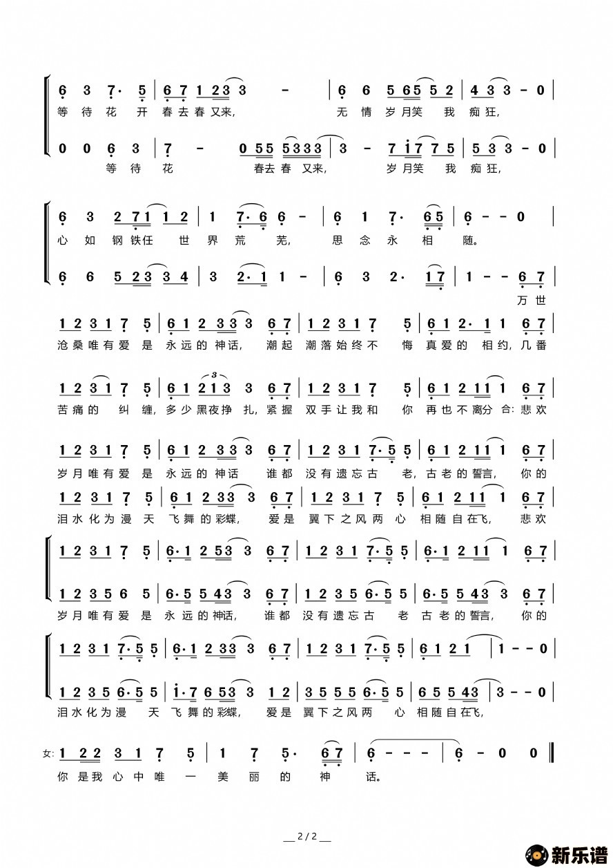 《美丽的神话》最新曲谱 孙楠vs韩红