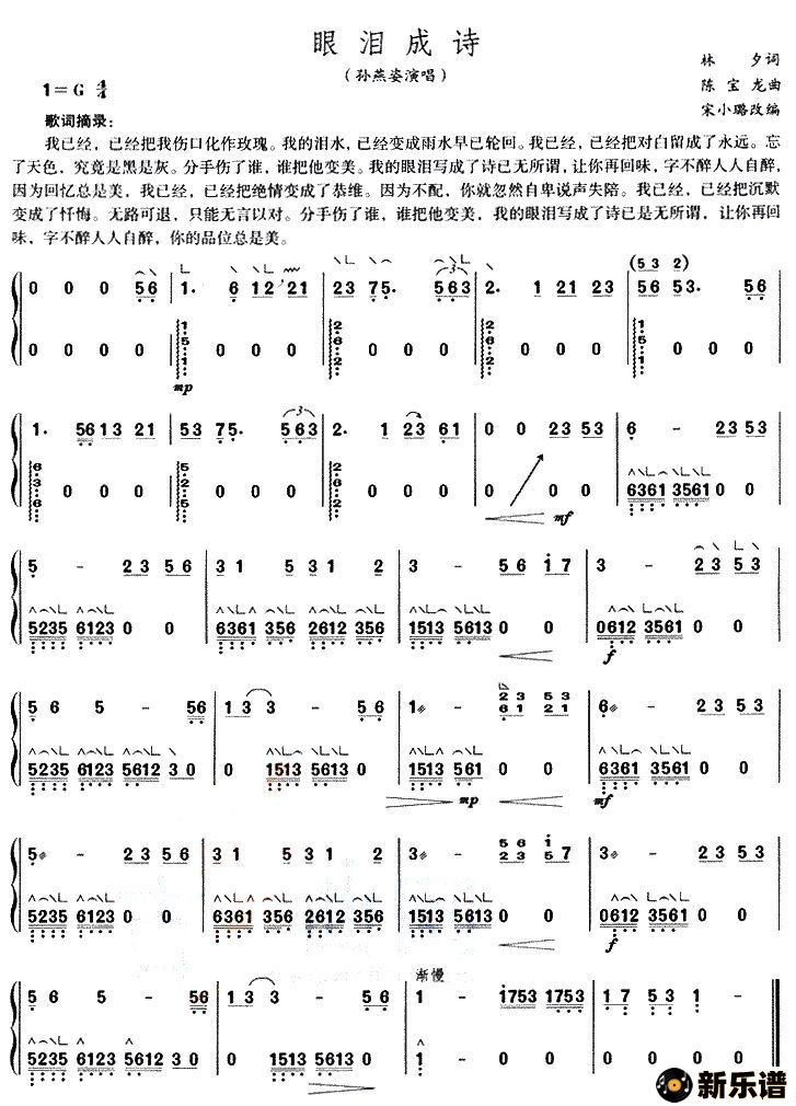 演唱的眼泪成诗歌词,眼泪成诗最新曲谱.