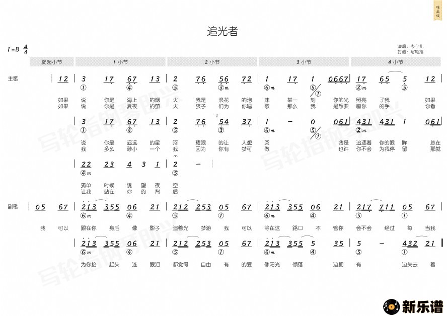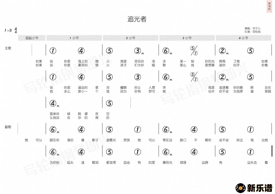 岑宁儿演唱的追光者歌词,追光者最新曲谱.
