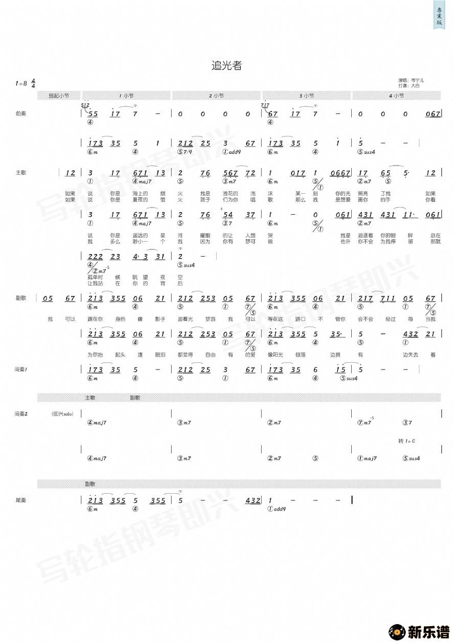 追光者(电视剧《夏至未至》插曲)最新曲谱