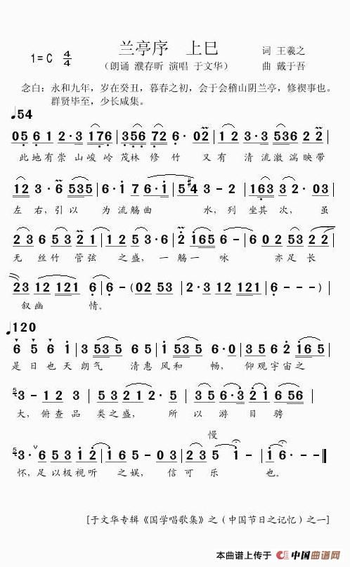 作词:王羲之 作曲:戴于吾(王羲之词 戴于吾曲)