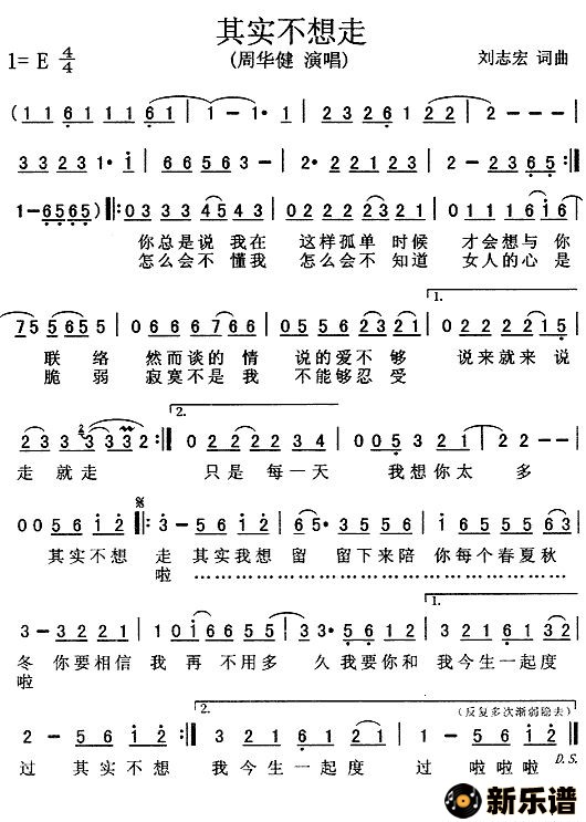 周华健演唱的其实不想走歌词,其实不想走最新曲谱.