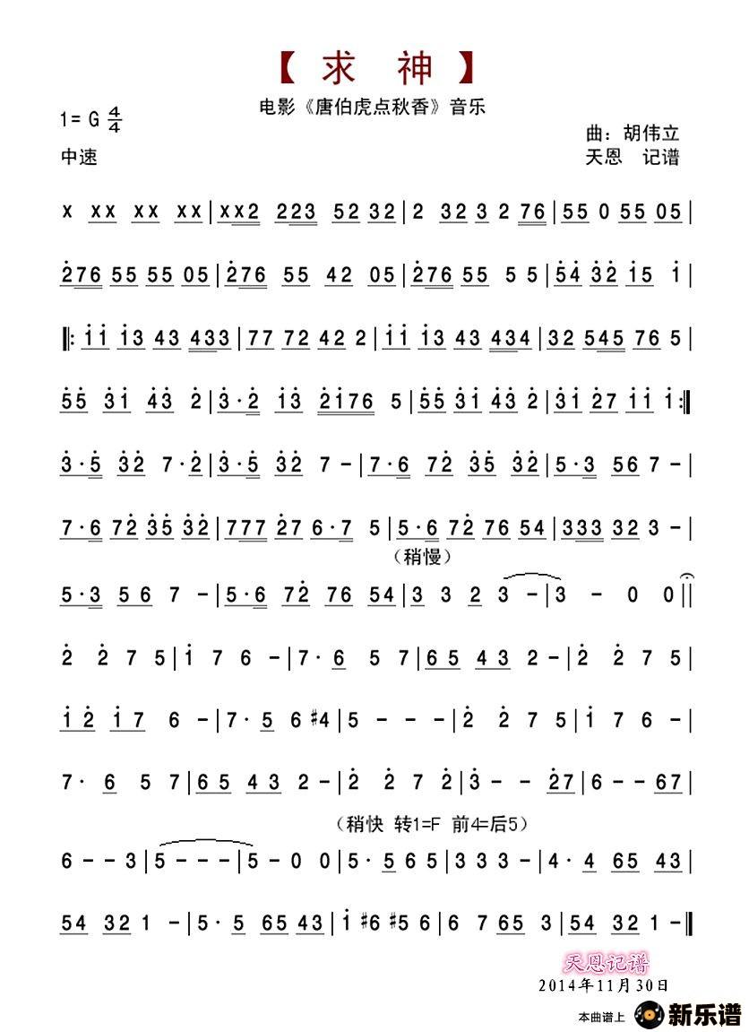 《求神(电影《唐伯虎点秋香》音乐)》最新曲谱 -天恩制谱