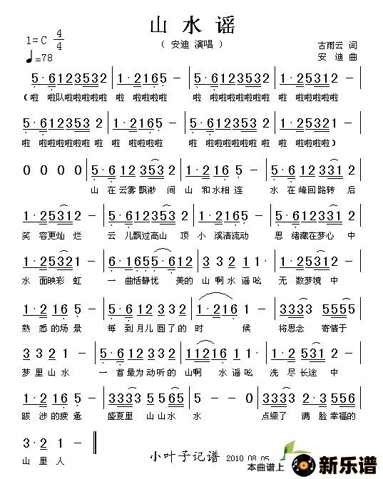 《山水谣》最新曲谱 安迪-小叶子制谱