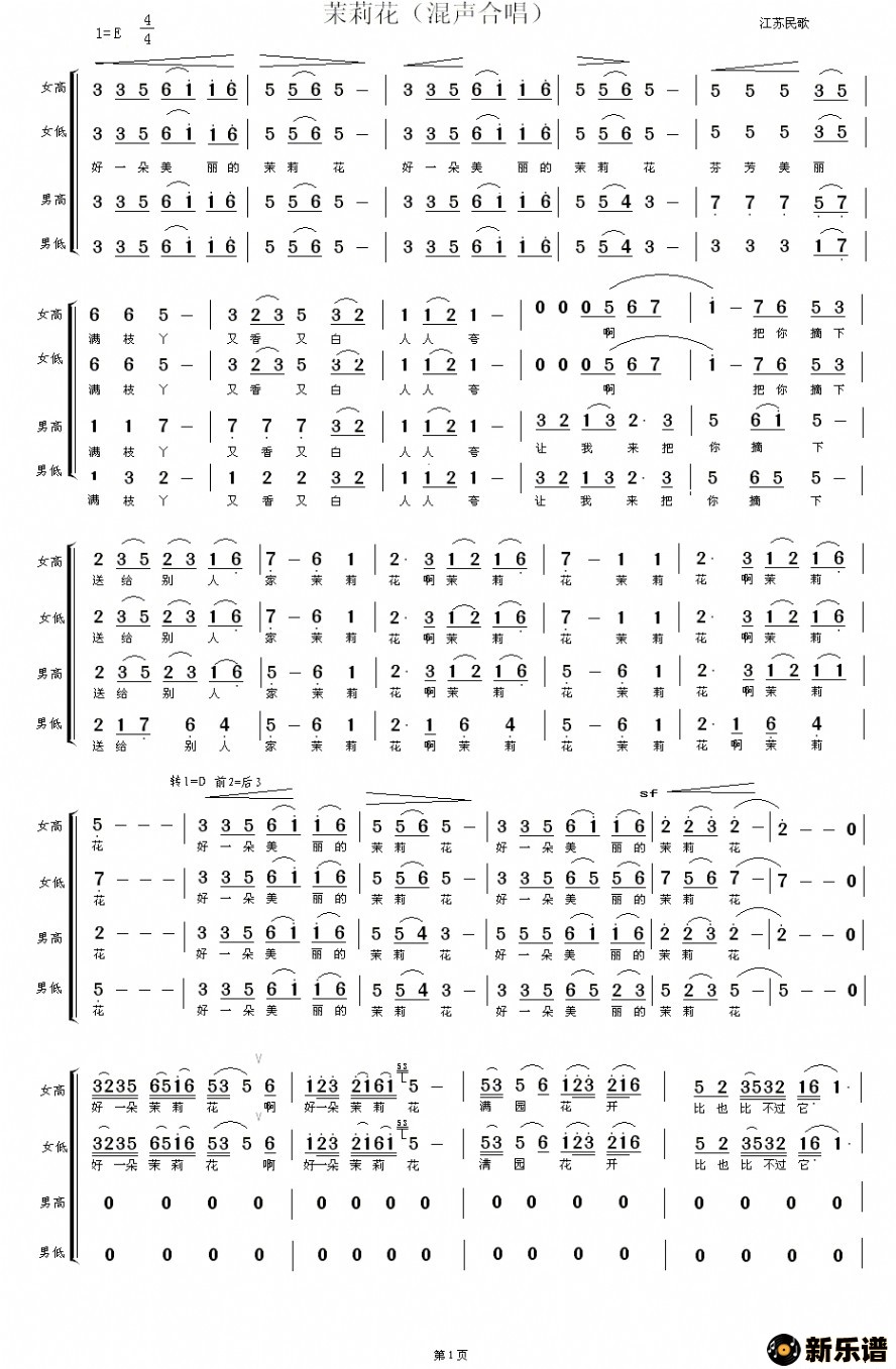 《茉莉花》最新曲谱 葫芦岛老干部合唱团