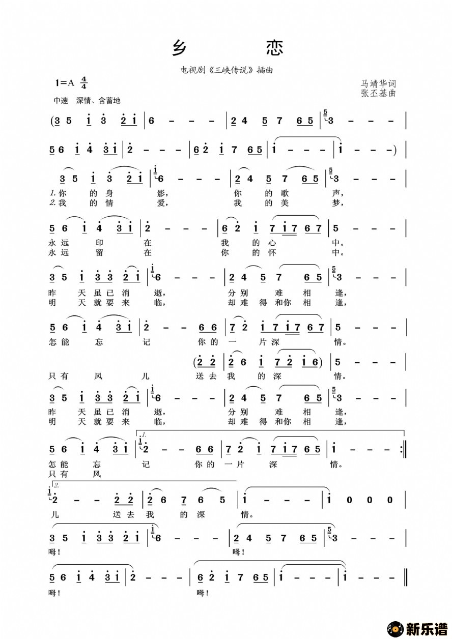 李谷一演唱的乡恋歌词,乡恋最新曲谱.