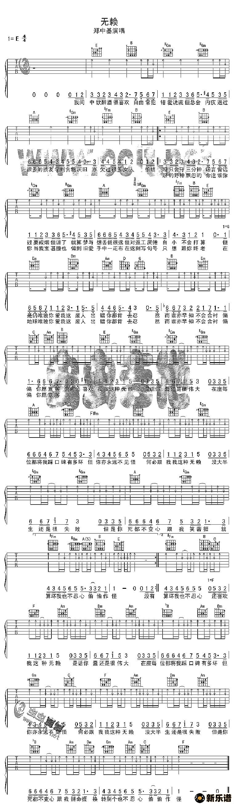 郑中基演唱的无赖歌词,无赖最新曲谱.