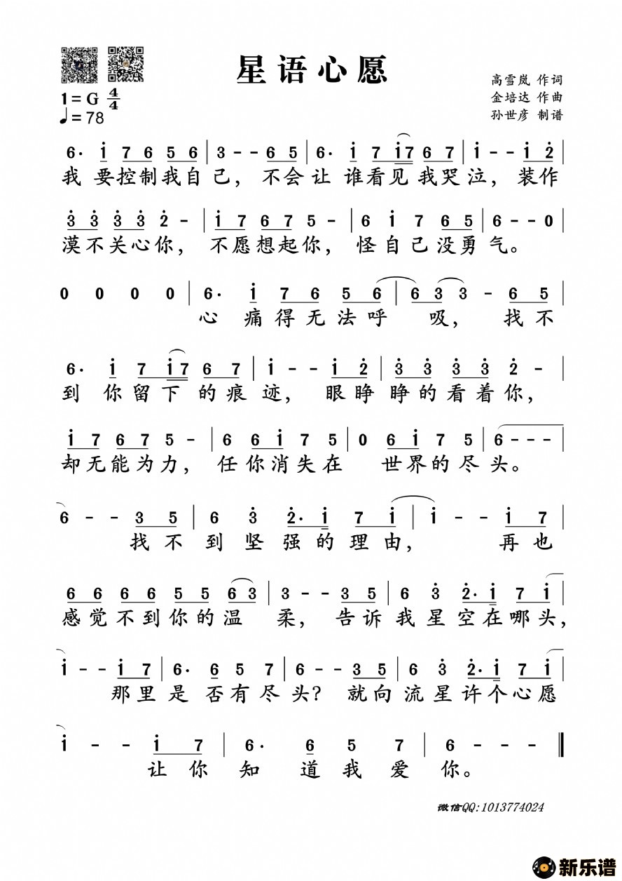 《星语心愿》最新曲谱 -孙世彦制谱