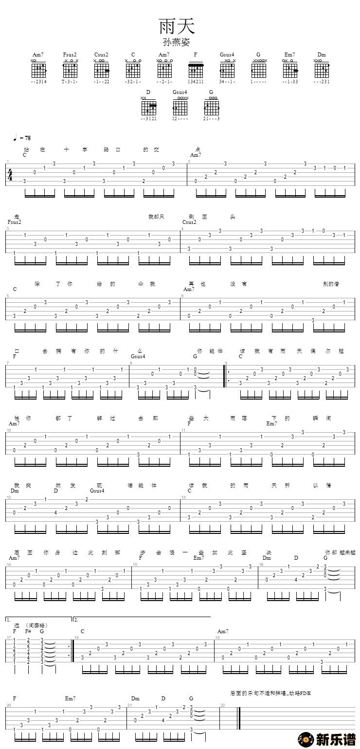 孙燕姿演唱的雨天歌词,雨天最新曲谱.