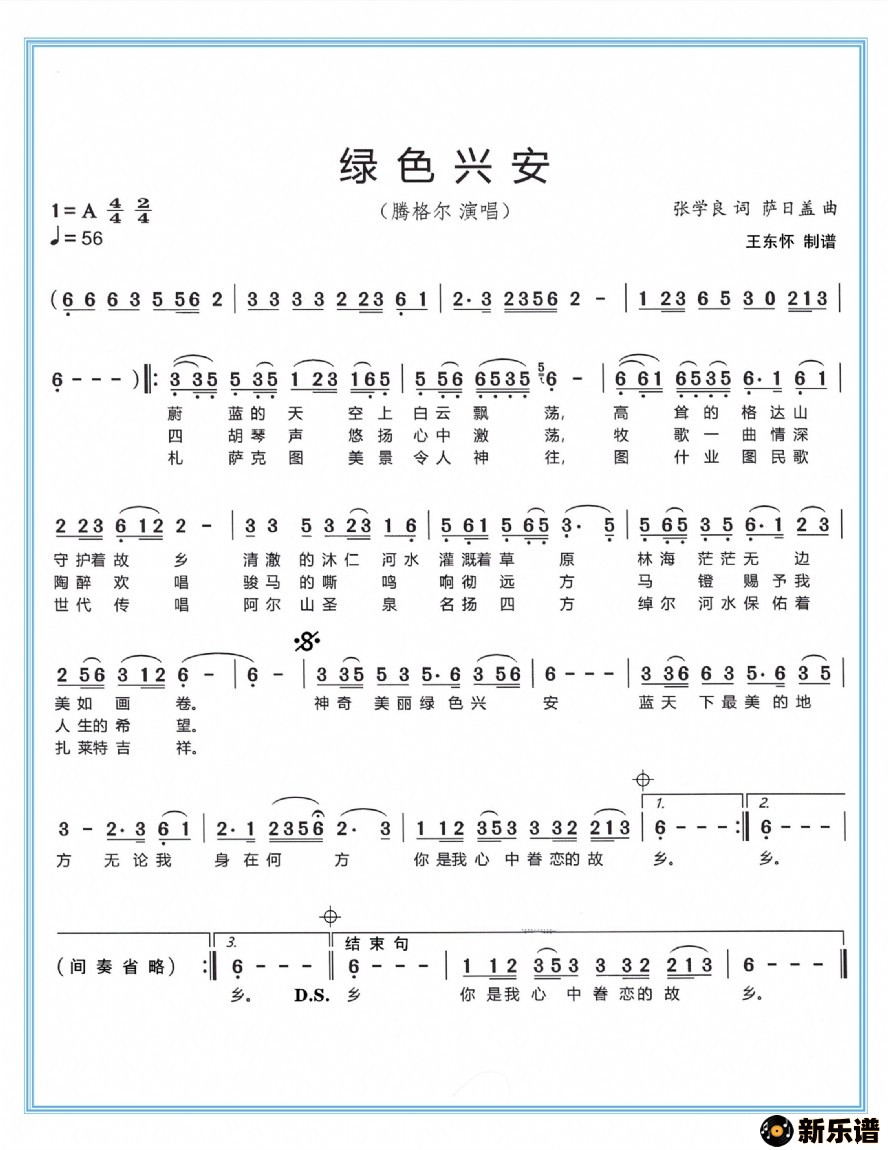 兴安(腾格尔)演唱的绿色兴安歌词,绿色兴安最新曲谱.